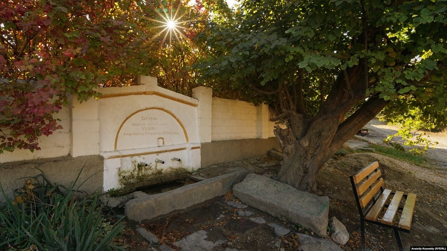 Зокрема, так сталося з джерелом в селі Сувук-Сала (з 1945 року — Грушівка). Типове за архітектурою кримське чєшмє (джерело) раптом стало джерелом святого Пантелеймона Цілителя під патронатом РПЦ. Архітектура фонтанів залишилася кримською, але написи та ікони змінювали їхній “паспорт”.