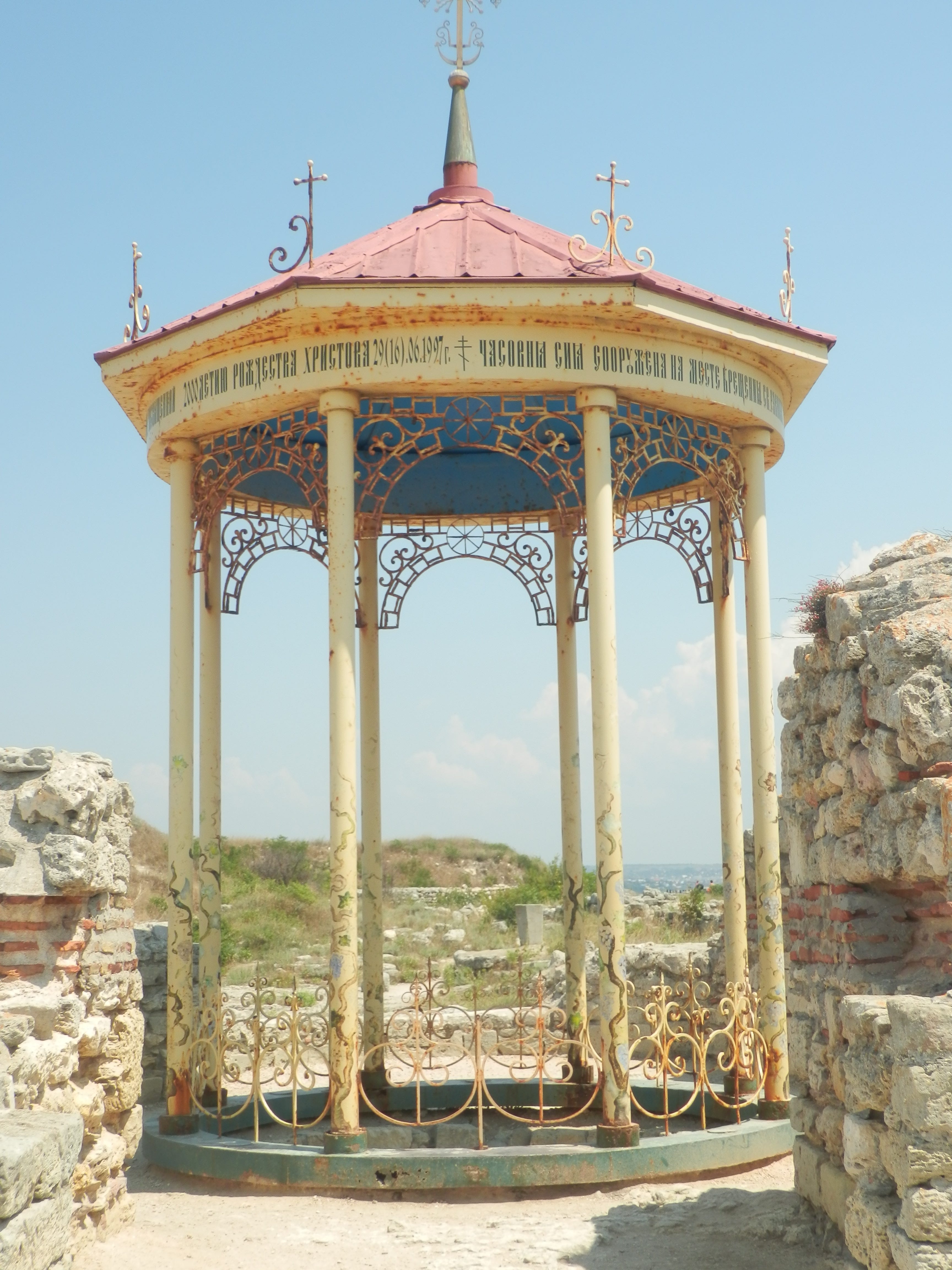 У 1850 році клопотанням архієпископа Інокентія тут була заснована Свято-Володимирська обитель, а у 1861 році відбулася урочиста закладка Володимирського собору. Під час його будівництва була зруйнована херсонеська ротонда VII століття. Бертьє-Делагард доводив, що саме в цій ротонді нібито хрестився князь Володимир. Було розібрано й інші старохристиянські святині, а матеріал, важливий для дослідників, пішов на будівництво.